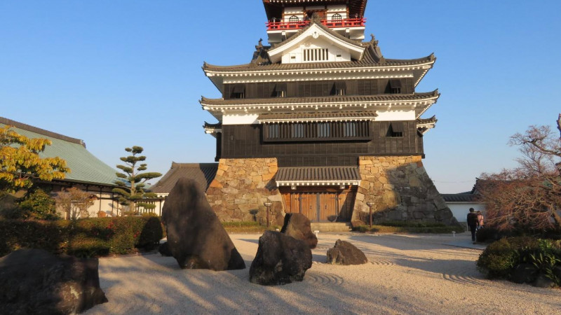 이누야마성은 아이치현 이누야마시를 흐르는 기소가와의 남쪽 기슭에 있는 해발 약 80미터의 성산에 세워져 있으며, 1537년 노부나가의 삼촌인 오다 노부나가가 기노시타성에서 성곽을 옮겨 쌓았다고 전해진다. 천수각은 에도시대까지 건립된 "현존하는 천수각 12성 "중 하나이다. 또한 히메지성, 마츠모토성, 히코네성, 마쓰에성과 함께 국보로 지정되어 국내에서도 손꼽히는 성으로 높은 평가를 받고 있으며, 3층 4층 지하 2층의 전망대형 천수각은 균형감이 넘쳐나며 특유의 안정감을 자아내고 있다.천수각에 들어갈 수 있는 출입구가 있는 지하 아노쿠라에서는 약 19m 높이의 천수각을 지탱하는 돌담과 굵은 대들보를 볼 수 있으며, 1층 중앙부에는 제1실, 제2실, 상층부실, 창고실 등 4개의 방이 설치되어 있고, 2층에는 무사가 주위를 둘러싸고 있는 무사가의 방이 설치되어 있습니다. 3층 지붕의 남북은 당파풍(唐破風)으로, 동서는 이리모야파풍(入母屋破風)으로 장식되어 있습니다.