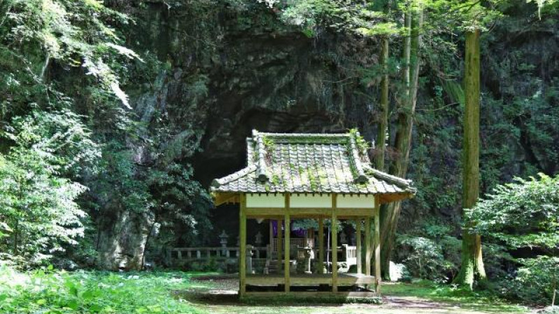 더 안쪽으로 들어가면 신전이 있는데, 큰 동굴 안에 사당이 있다. 이 큰 동굴 자체가 신성한 신체이며, 옛날에는 조몬인이 살았다고 한다. 동굴 안은 여름에도 서늘하고 신성한 분위기를 느낄 수 있다. "이와토 신사 "입구 근처에는 사이고가와 강의 원류가 되는 물 길어 올리는 곳이 있다. "이와토 신사 "에서 신성한 공간을 느끼기 전에 이곳에서 참배를 하고 가자.
