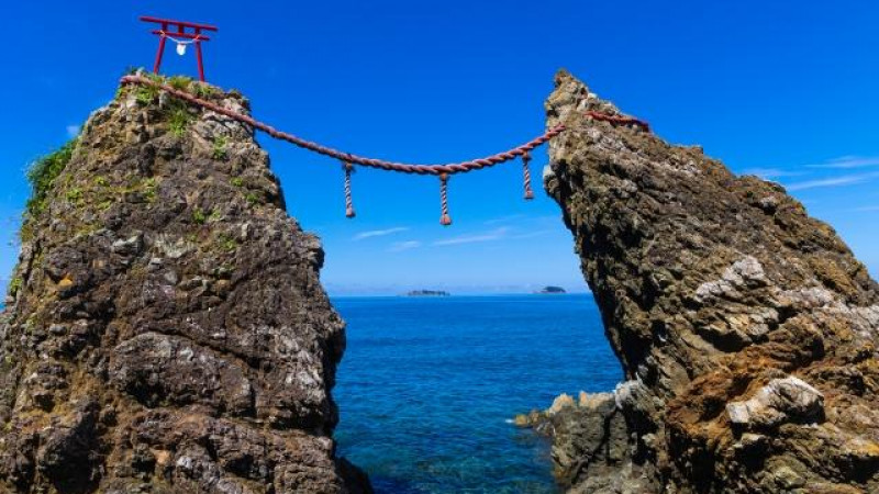 나가사키현의 외딴 섬인 "대마도 "에 있는 것이 "와타도미 신사 "입니다. 주신은 "히코호호데데미노미노미코토(彦火火出見尊) "과 "토요타마히메노미코토(豊玉姫命) "의 부부 신을 모시고 있습니다. 헤이안 시대부터 오랜 역사를 가진 인연 맺음에 효험이 있는 신사입니다.