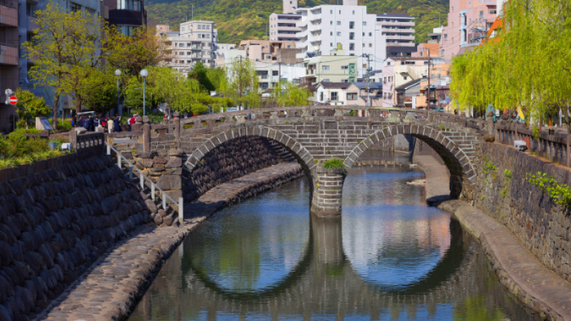 나가사키 시내에 있는 "안경다리 "는 다리와 강물에 비친 다리의 반사에 의해 둥근 안경처럼 보이는 것이 특징인 다리이다. 에도시대에 고후쿠지(興福寺)의 묵수여정(黙水如定)선사가 건설한 것으로 알려져 있다. 당시로서는 최고의 기술이 집약된 돌다리는 레트로한 분위기를 풍길 뿐만 아니라 에도시대 나가사키의 국력을 느낄 수 있다.