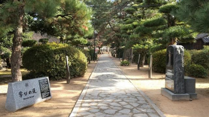 경내에는 "배움의 길 "이라는 80m 정도의 작은 길이 있습니다. 길 양옆에는 마쓰시타무라주쿠에서 배운 막부 말기~메이지 시대의 위인들의 말이 새겨져 있습니다. 일본 역사의 전환점이라 할 수 있는 중요한 장소로 역사의 낭만을 느낄 수 있는 세계유산입니다.