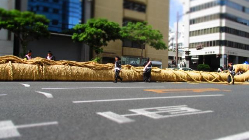 줄은 나하 군항에서 남자 줄과 여자 줄 두 개를 묶어 만든다.