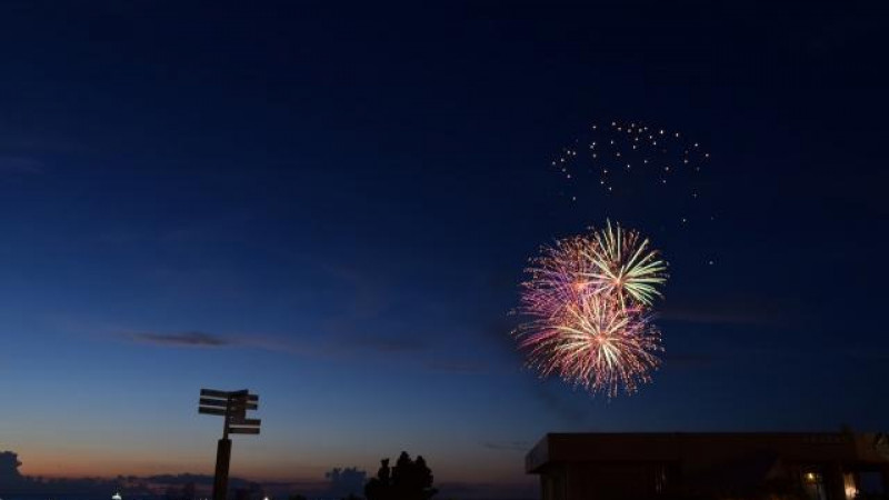 음악에 맞춰 연이어 발사되는 불꽃은 여름에 기억에 남는 멋진 광경이다.