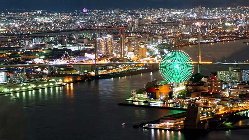 大阪市内、ユニバーサルスタジオ、天保山大観覧車をはじめ、関空や高速道路、大阪に架かる橋などライトアップされていて、上から見る夜景は本当に宝石箱のように見えます。