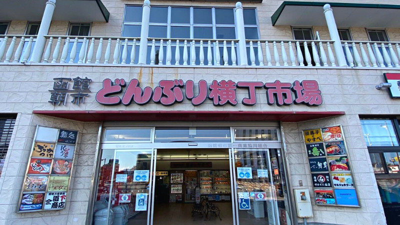 駅から徒歩1分の場所には、どんぶり横丁市場が広がります。