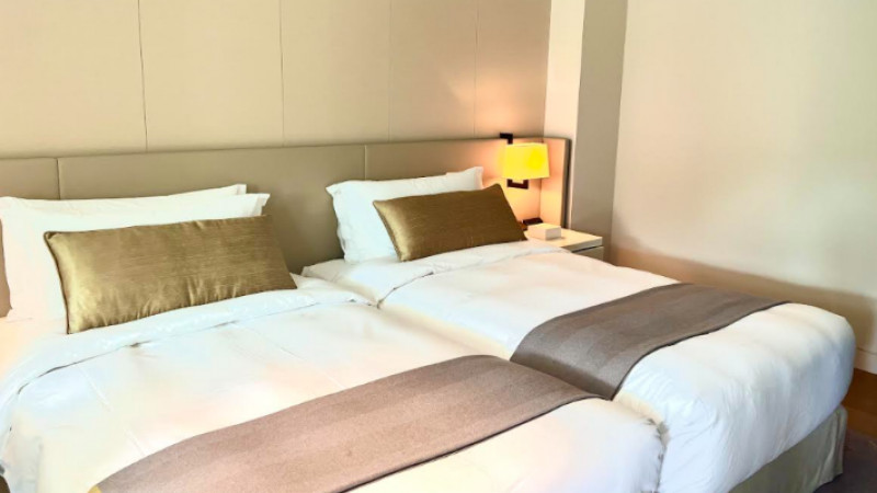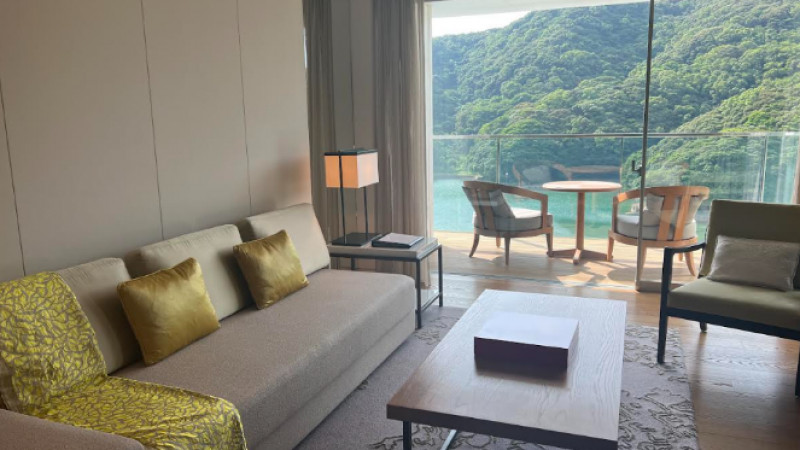 ホテル内へ案内されると、着席スタイルでチェックインをしてくださるという接客の丁寧さに、最初からリゾートを感じることができます。そして解放感のあるロビーを横目にお部屋へ…。