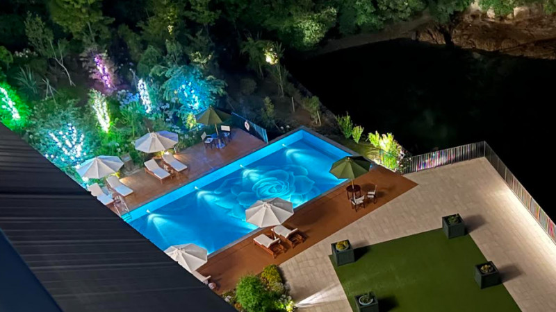 ご紹介するのは長崎県西海市にある『オリーブベイホテル』です。“森の緑と瀟洒な海に包まれて、非日常のリゾートステイ。小さいけれど、贅沢なホテルです。”(公式HPより引用)というコンセプトからも、贅沢な時間を過ごせることがわかります。写真のホテルの設計を手掛けたのは、あの世界的建築家である隈研吾さんです。四季折々の植栽と緑に囲まれたたずむホテルは、一度訪れれば忘れることのできない景観の美しさで、魅了されること間違いなしです。